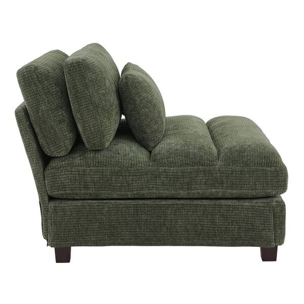 Panner 39 in. Armless 1 Piece Vertical Stripe Chenille Center Sectional Sofe in Green with Removable Pillow