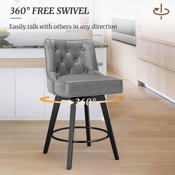 Roman 26.5 in. Dark Gray Faux Leather Solid Wood Leg Counter Height Swivel Bar Stool With Back(Set of 3)