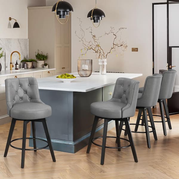 Rowland 26.5 in Seat Height Dark Gray Faux Leather Counter Height Solid Wood Leg Swivel Bar stool(Set of 1)