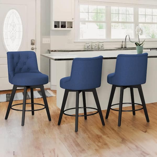 Rowland 26.5 in Seat Height Navy Blue Upholstered Fabric Counter Height Solid Wood Leg Swivel Bar stool(Set of 3)