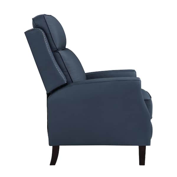 Valkyrie Navy Genuine Leather Recliner Chair Arm Chair with Nailhead Handrails & Adjustable Footrest (Set of 2)