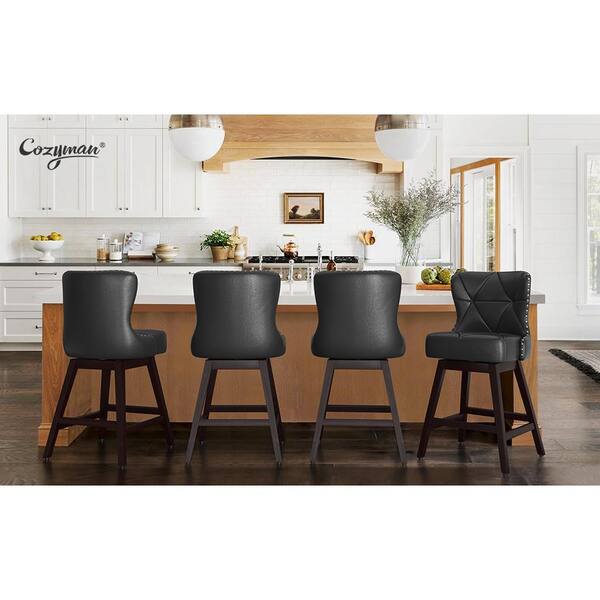 Zola 26 in. Black Wood Frame Faux Leather Upholstered Swivel Bar Stool (Set of 4)