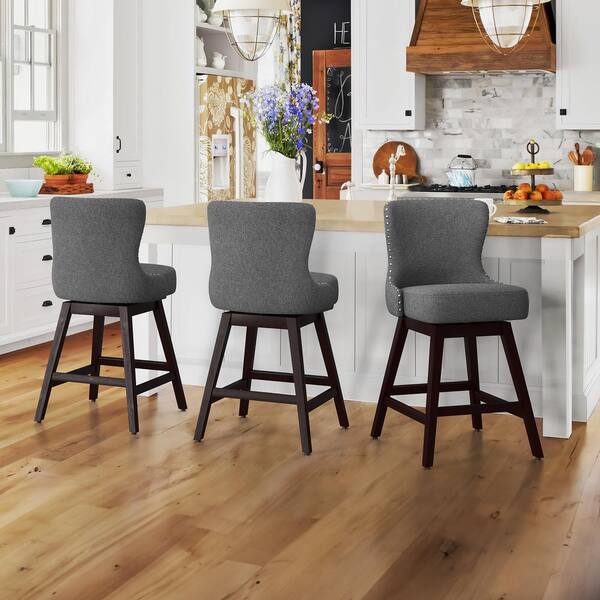 Zola 26 in. Gray Fabric Wood Frame Upholstered Swivel Bar Stool (Set of 3)