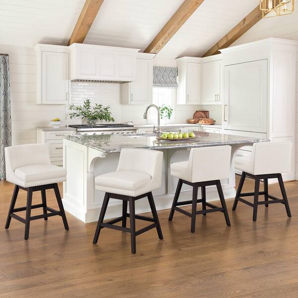 Zorro 27 in.Beige Fabric Upholstered Swivel Counter Stool Wood Frame Double Cushion Swivel Bar Stool Set of 4