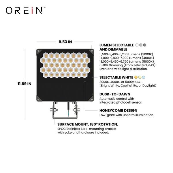 Dark Bronze Low Glare LED Flood Light-400W Eq, 14,000 Lumens, Selectable Lumens & CCT, IP65 Waterproof, 5-Year Warranty