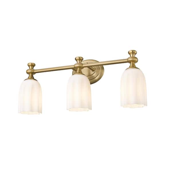 Orion 22 in. 3-Light Modern Gold Vanity-Light with Opal Etched Glass Shade