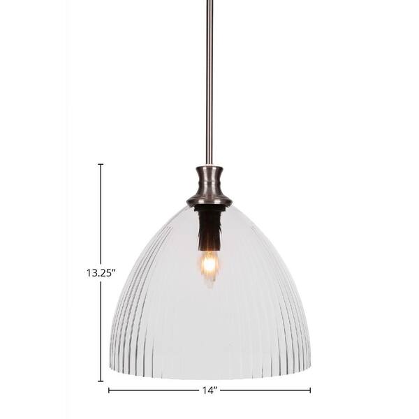 Orleans 60-Watt 1-Light Brushed Nickel Shaded Pendant Light with 14 in. Clear Ribbed Glass Shade, No Bulb Included