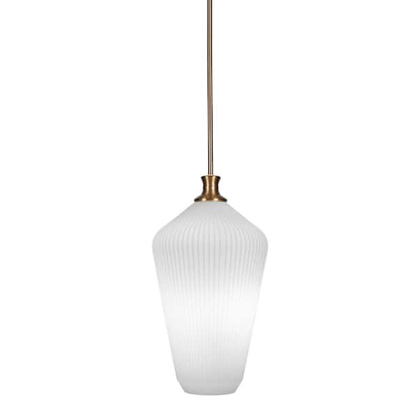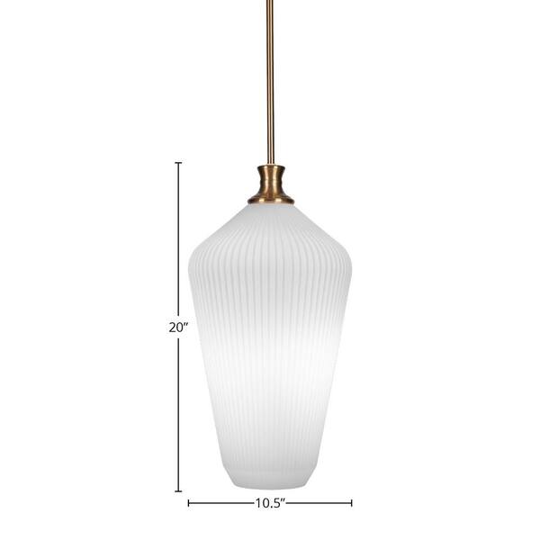 Orleans 60-Watt 1-Light New Age Brass Shaded Pendant Light with 11 in. Opal Frosted Glass Shade, No Bulb Included
