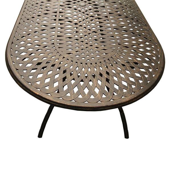 Ornate Modern Rose 11-Piece Bronze Aluminum Oval Outdoor Dining Set with 10-Chairs