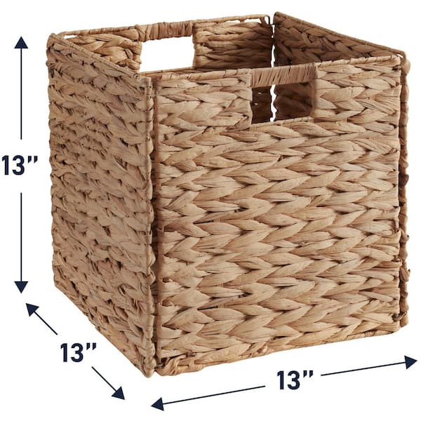 Natural Brown, 13 in. x 13 in. Water Hyacinth Wicker Storage Decorative Baskets with Handles, Set of 2