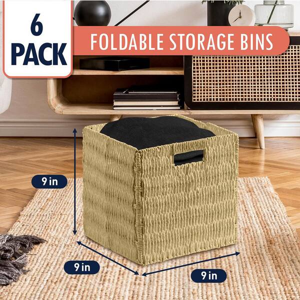 Natural Brown, 9 in. x 9 in. Paper Wicker Storage Decorative Baskets with Handles, Set of 6
