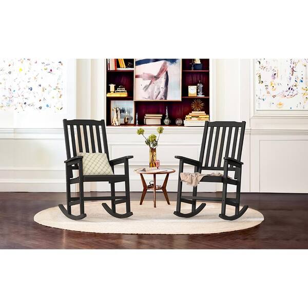Orson Black Acacia Wood Classic Adirondack Weather-Resistant Outdoor Porch Rocker Outdoor Rocking Chair (Set of 4)
