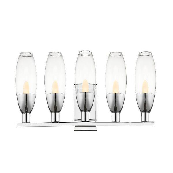 Osono 41.1 in. 5-Light Chrome Integrated LED Shaded Vanity Light with Clear Glass Shade