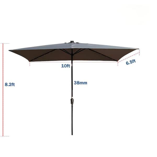 10 ft. Rectangular Patio Umbrella, Solar LED Lighted Outdoor Umbrellas with Crank and Push Button Tilt in Anthracite