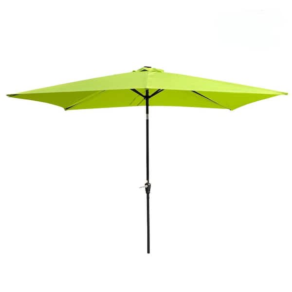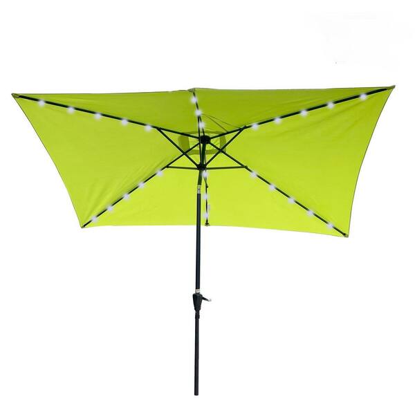 10 ft. Rectangular Patio Umbrella, Solar LED Lighted Outdoor Umbrellas with Crank and Push Button Tilt in Lime Green
