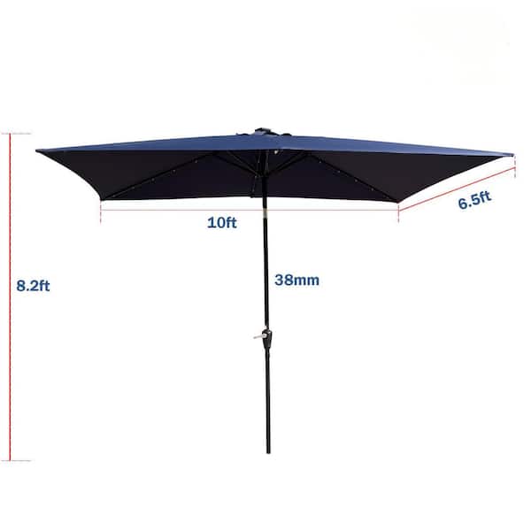 10 ft. Rectangular Patio Umbrellas, Solar LED Lighted Outdoor Umbrellas with Crank and Push Button Tilt in Navy Blue