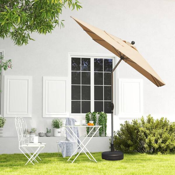 10 ft. Steel Market Patio Umbrella in Beige, Rectangle Patio Umbrella with Crank Lift and Tilt Function