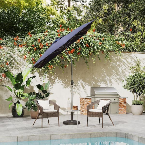 10 ft. Steel Market Patio Umbrella in Navy Blue, Rectangle Patio Umbrella with Crank Lift and Tilt Function