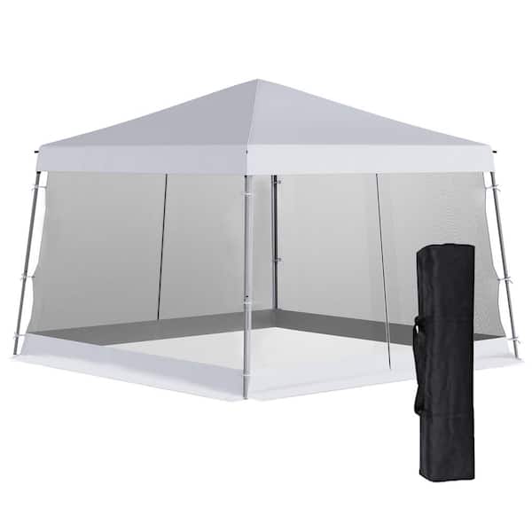 10 ft. x 10 ft. White Slant Leg Pop-Up Canopy Tent, Instant Sun Shelter with Netting and Carry Bag, Height Adjustable