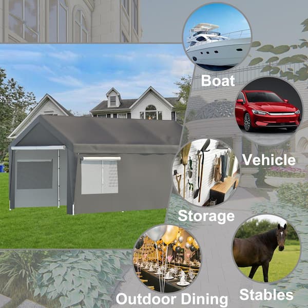 10 ft. x 20 ft. Grey Pop-Up Canopy with Removable Sidewalls and Roll-Up Ventilated Windows, Heavy Duty Boat Car Canopy