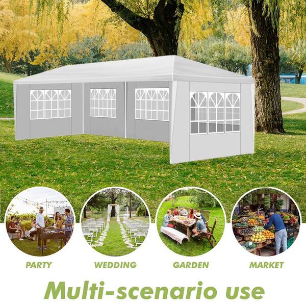 10 ft. x 30 ft. White Wedding Tent, Outdoor Canopy with 5 Removable Sidewalls for Party, Wedding, Marketplace