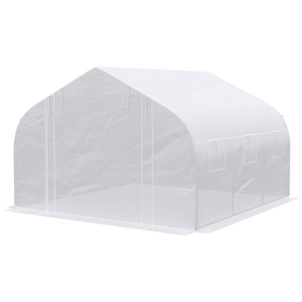 11.5 ft. W x 9.8 ft. D x 6.6 ft. H Walk-in Greenhouse, Tunnel Green House with Zippered Mesh Door & 6 Mesh Windows-White