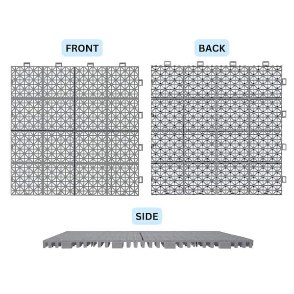 12-Pack Plastic Interlocking Deck Tiles, Waterproof Outdoor All Weather Anti-slip for Shower Balcony Porch - Gray