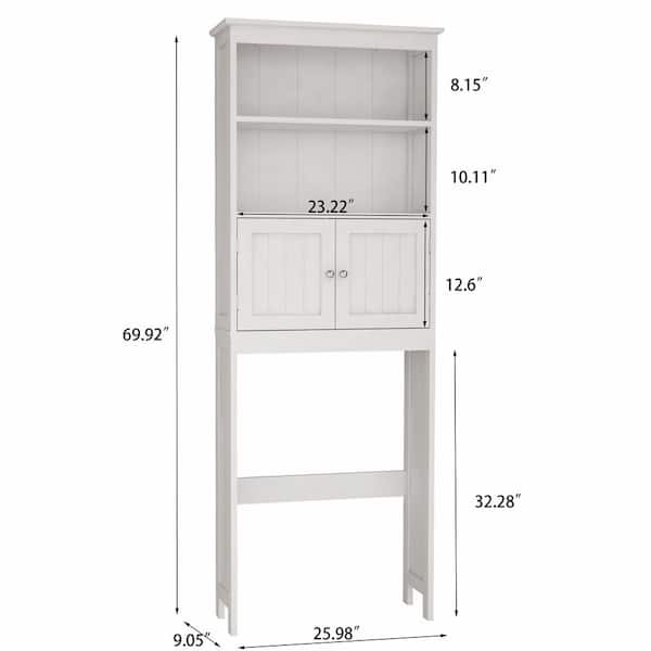 25.98 in. W x 69.92 in. H x 9.05 in. D White Over The Toilet Storage with 2 Doors