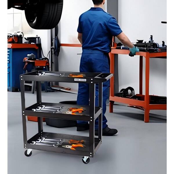 3-Tier Tool Cart, Steel Kitchen Pantry with Casters for Kitchen/Laundry/Garage in Black