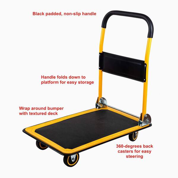 330 lbs. Folding Platform Cart, Heavy-Duty Dolly Push Hand Serving Cart for Loading and Storage in Yellow