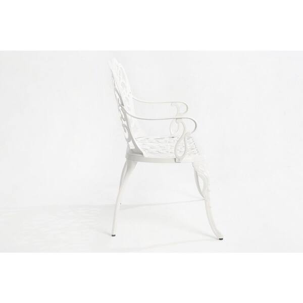 34.6 in. 2-Person Aluminum Outdoor Bench, Patio Garden Bench with Floral Rose for Patio, Park, Lawn, Yard in White