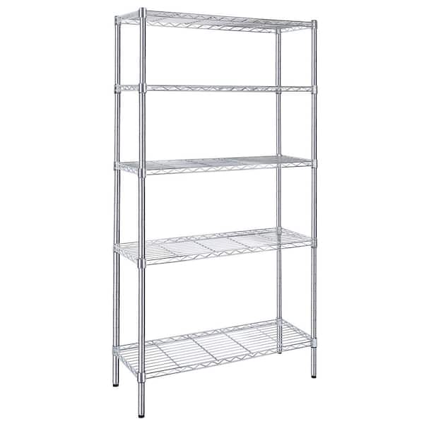 5-Tier Shelving Unit, Wire Metal Stackable Storage, Heavy Duty Shelf for Kitchen, Garage in Chrome
