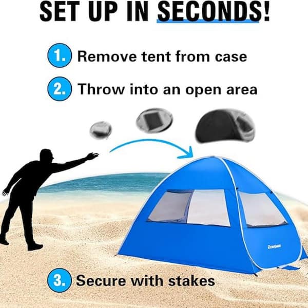 5 ft. x 5 ft. Blue Polyester Pop Up Beach Tent, Portable Instant Tent Sun Shelter for 3/4 Person
