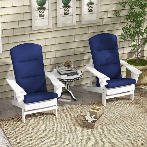 59 in. x 24 in. x 2 in. Blue Replacement Outdoor Adirondack Chair Cushion with High Back and Ties (2-Piece)