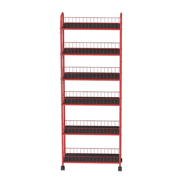 6-Shelf Red Metal Rolling Wire Rack, Storage Shelving Unit for LaunD)ry Bathroom Kitchen Garage (22.8"W x 10" D)