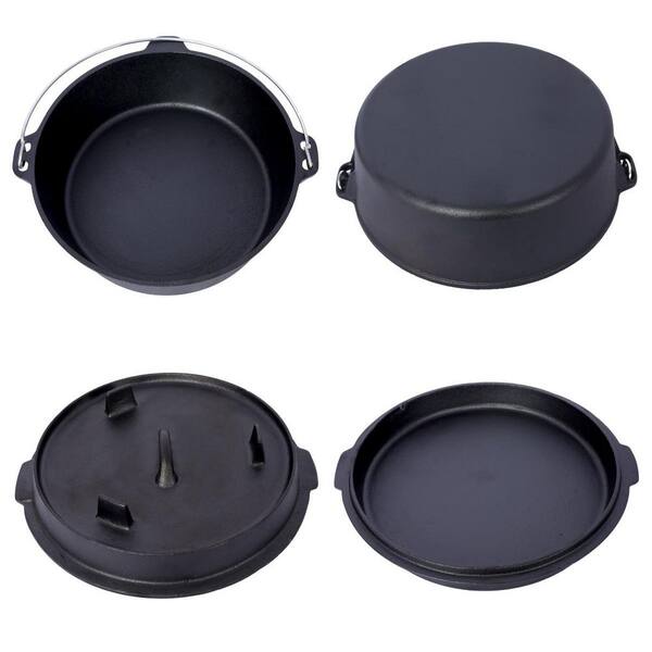 6 qt. Pre-Seasoned Cast Iron Dutch Oven, Round Camping Deep Pot with Lid and Pot Rack for Outdoor Cooking BBQ, Black