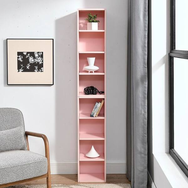 8-Cube Media Storage Tower Rack, Freestanding Accent Bookcase Display Cabinet with Adjustable Shelves in Pink