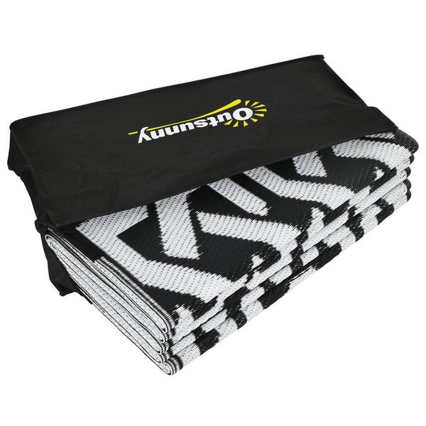 8' x 10' Reversible Outdoor Rug, Waterproof Plastic Straw Floor Mat Portable RV Camping Carpet in Black & White Chain