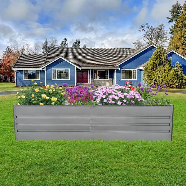 8 x 4 x 2 ft. Grey Metal Garden Bed, Outdoor Planter Box Patio Kit for Vegetables Flowers Herb (2-Pack)