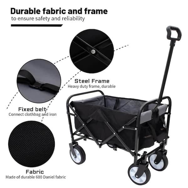 9.7 cu. ft. Fabric Collapsible Garden Cart, Heavy Duty Beach Wagon Camping Grocery Cart w/3 Plastic Liner Bags, Black