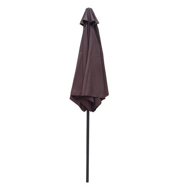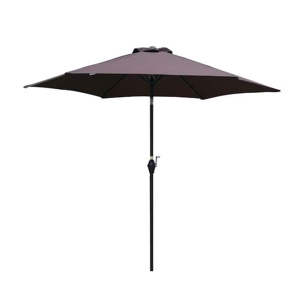 9 ft. Steel Hexagon Patio Umbrella Outdoor Table Umbrella with Push Button Tilt and Crank in Chocolate