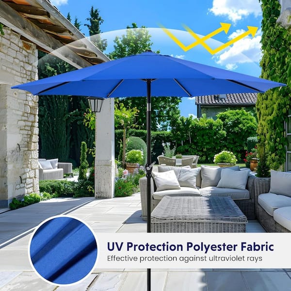 9 ft. Steel Market Outdoor Patio Umbrella with 8-Ribs, Tilt/Crank, UV Protection Waterproof for Garden/Deck in Blue