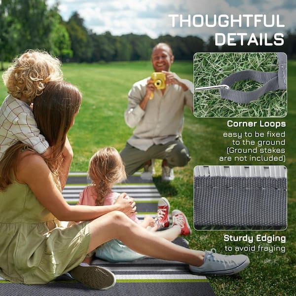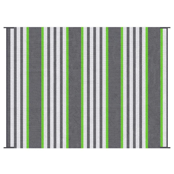 9' x 12' Reversible Outdoor Rug, Carpet Waterproof Plastic Straw Rug, Portable RV Camping Rugs in Green & Gray Striped