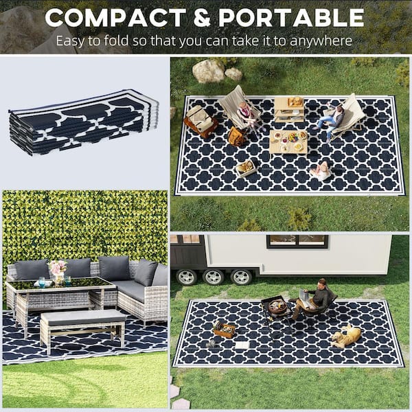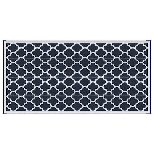 9' x 18' Reversible Outdoor Rug Carpet, Waterproof Plastic Straw Rug, Portable RV Camping Rugs in Blue & White