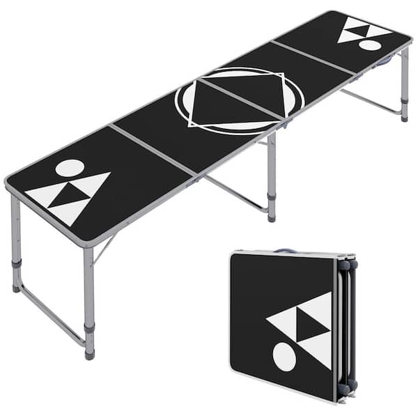94.5 in Rectangle Aluminum Folding Picnic Table with Adjustable Legs for Party, Travel, BBQ, Beach in Black White