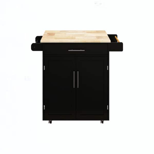 Black Rubber Wood Top Kitchen Cart with 1 drawer & 2 doors with Adjustable Shelves & towel rack