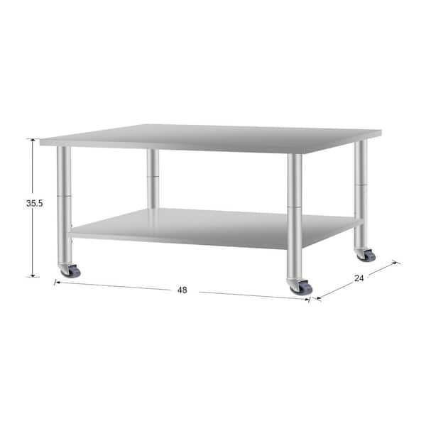 Commercial Work Table for Restaurant and Home Stainless Steel Kitchen Prep Table with Wheels in Silver