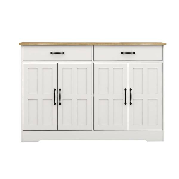 Farmhouse Buffet Cabinet Storage Sideboard with 2 Drawers and 4 Doors for Dining Living Room Kitchen Cupboard in White