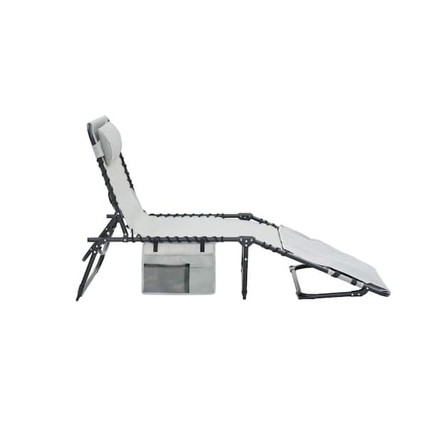 Folding Metal Chaise Lounge Pool Chair, Patio Sun Tanning Chair, Outdoor Lounge Chair with 4-Position Reclining Back