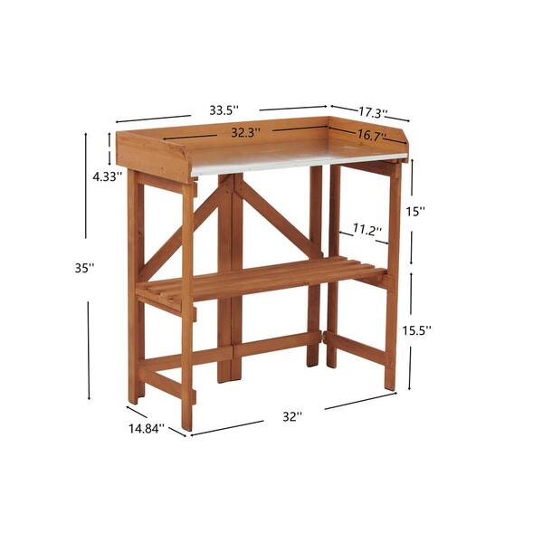 Folding Potting Bench Outdoor Solid Wood Foldable Garden WorkBench Station for Planting Horticulture with Shelves